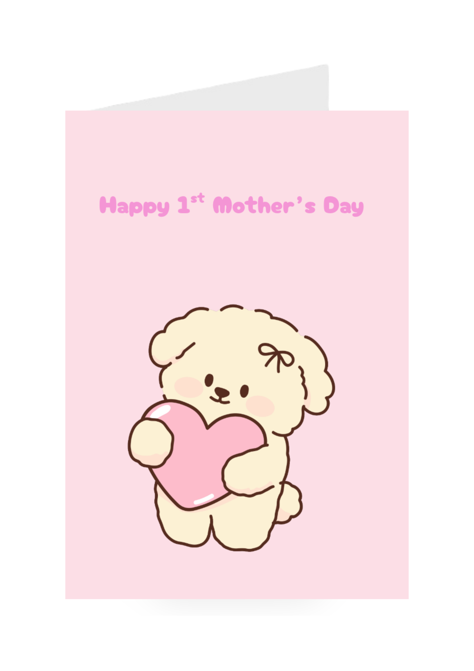 A5 Card, Pink background with pink writing and a bear on the front, blank inside