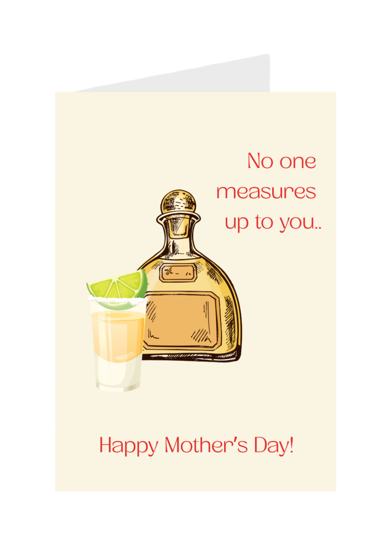 A5 card, Beige background with pink writing and tequila bottle on the front, blank inside